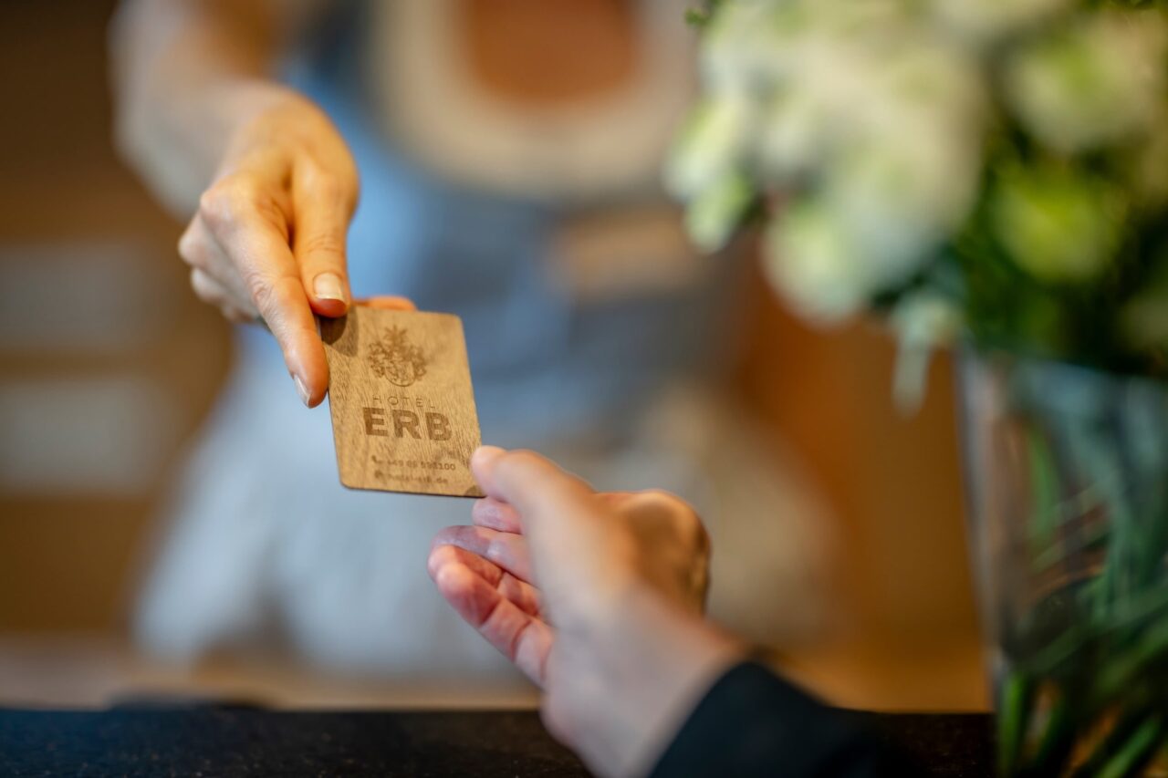 Dank moderner Technologie kannst du deinen Aufenthalt bei uns selbstständig und ortsunabhängig organisieren. Bereits kurz nach deiner Buchung hast du Zugriff auf alle wichtigen Funktionen: Du füllst den Meldeschein aus, begleichst deine Rechnung und lernst das Hotel ERB in Ruhe kennen.